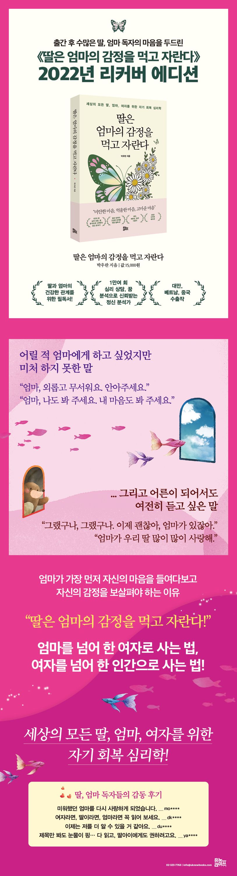 안녕하세요! 오늘은 박우란 작가의 책, "딸은 엄마의 감정을 먹고 자란다"에, 감정의 중요성을 강조하는 작품입니다. 그럼 시작해 볼까요??