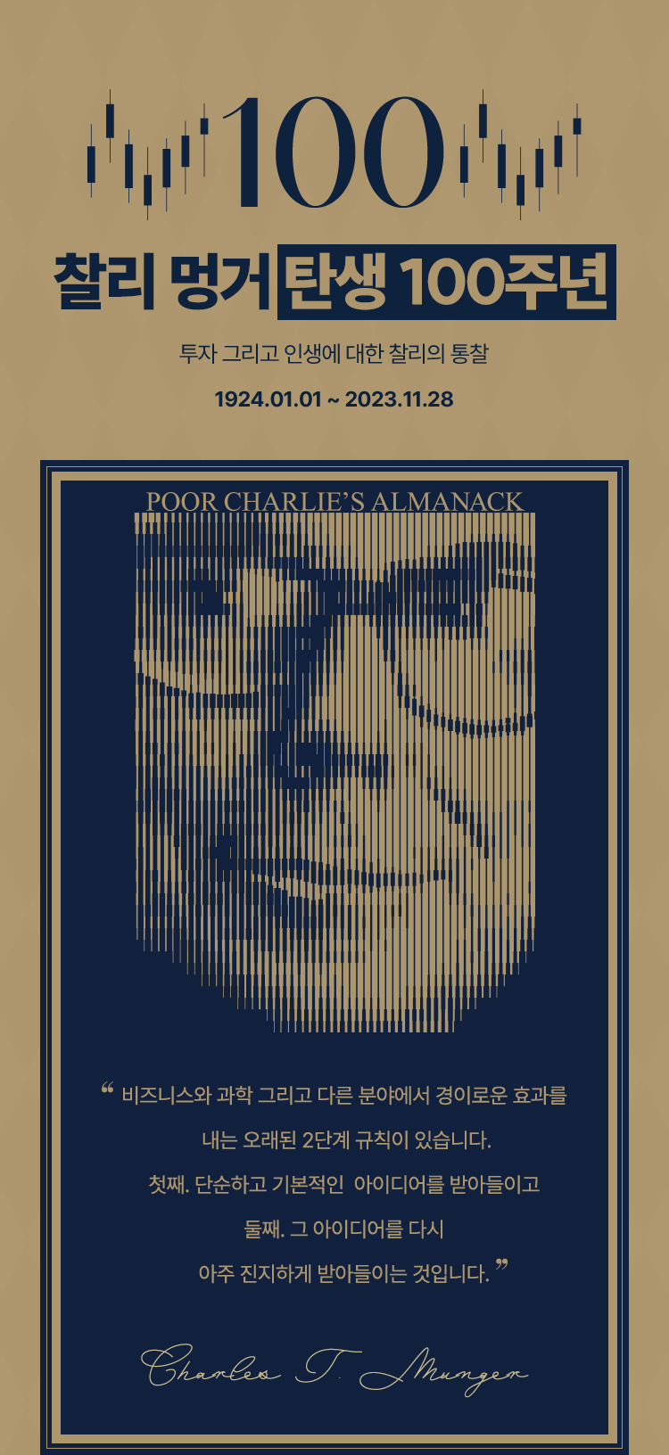 찰리 멍거는 1924년 1월 1일에 태어나 2023년 11월 28일에 100세를 맞이한 전설적인 투자자입니다. 그는 하버드 로스쿨을 졸업한 후, 법률가로서의 경력을 쌓았지만, 결국 투자 분야로 전향하게 됩니다. 멍거는 그의 독창적인 사고방식과 철학으로 많은 사람들에게 영향을 미쳤습니다. 그의 투자 원칙은 단순히 돈을 버는 것이 아니라, 인생을 어떻게 살아야 하는지에 대한 깊은 통찰을 제공합니다.